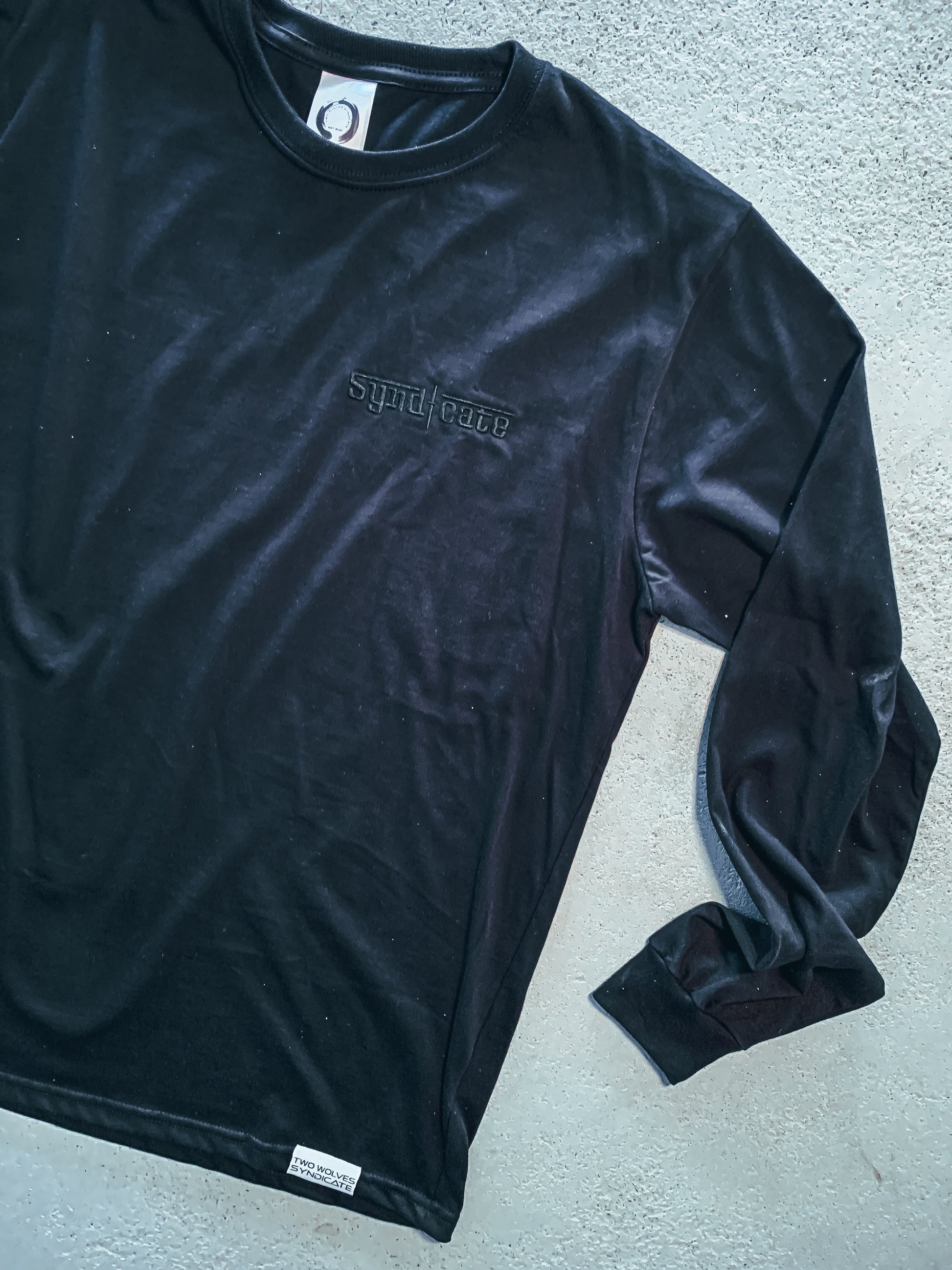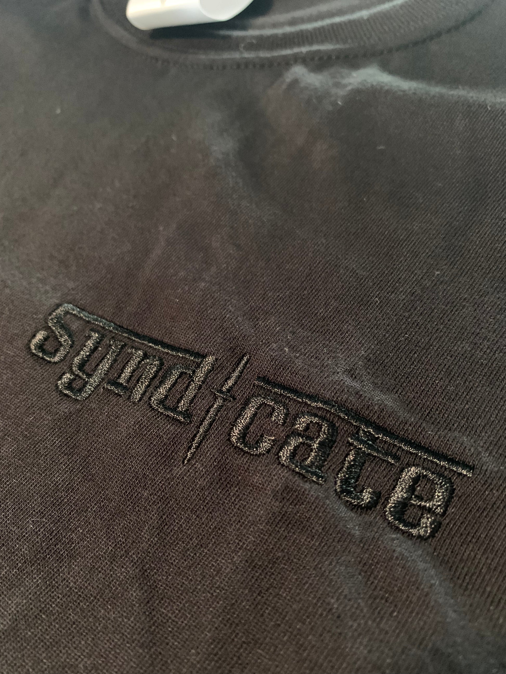 Embroidered Syndicate Logo on front left Chest + woven tag.